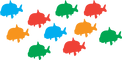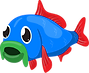 Big Ugly Fish are assembled from 3 main body parts, each of which is assigned one of 6 random colors. It's like pulling the lever on a slot machine to determine the colors for each Mouth, Body and Fins.